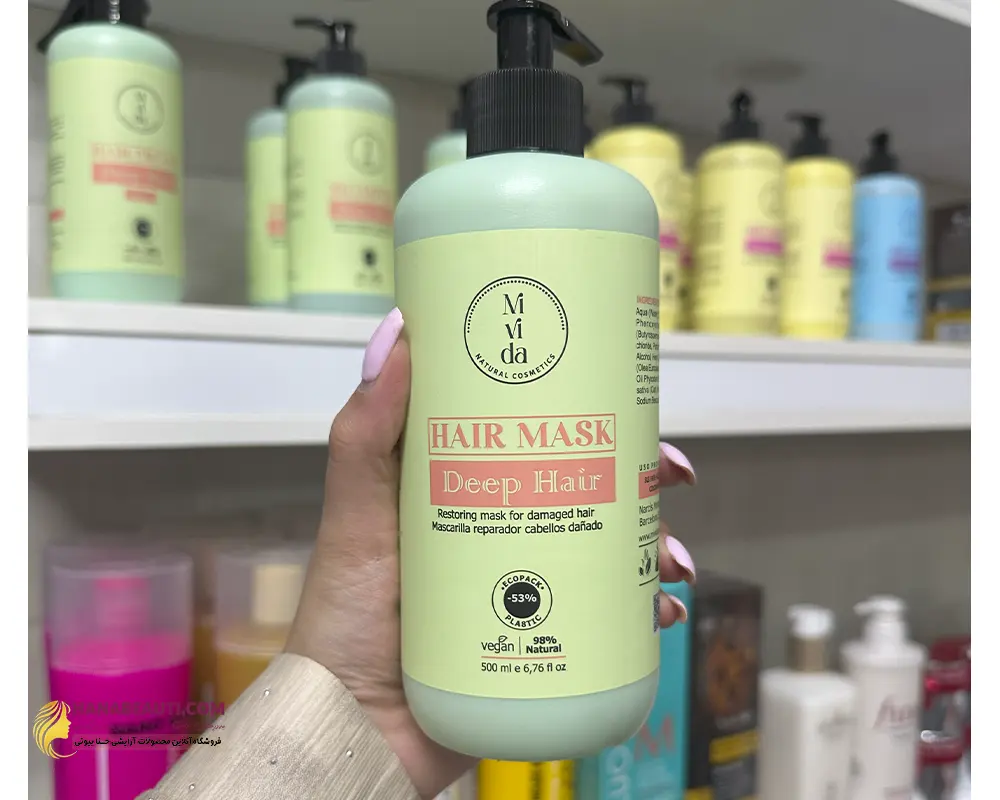 کرم مو (ماسک مو) بازسازی کننده دیپ هیر Mivida حجم ۵۰۰ میلیلیتر سبز