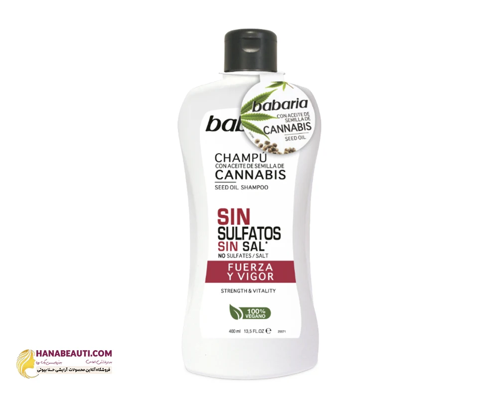 شامپو تقویت کننده بدون سولفات باباریا babaria حاوی عصاره کانابیس Cannabis حجم 400 میلی لیتر