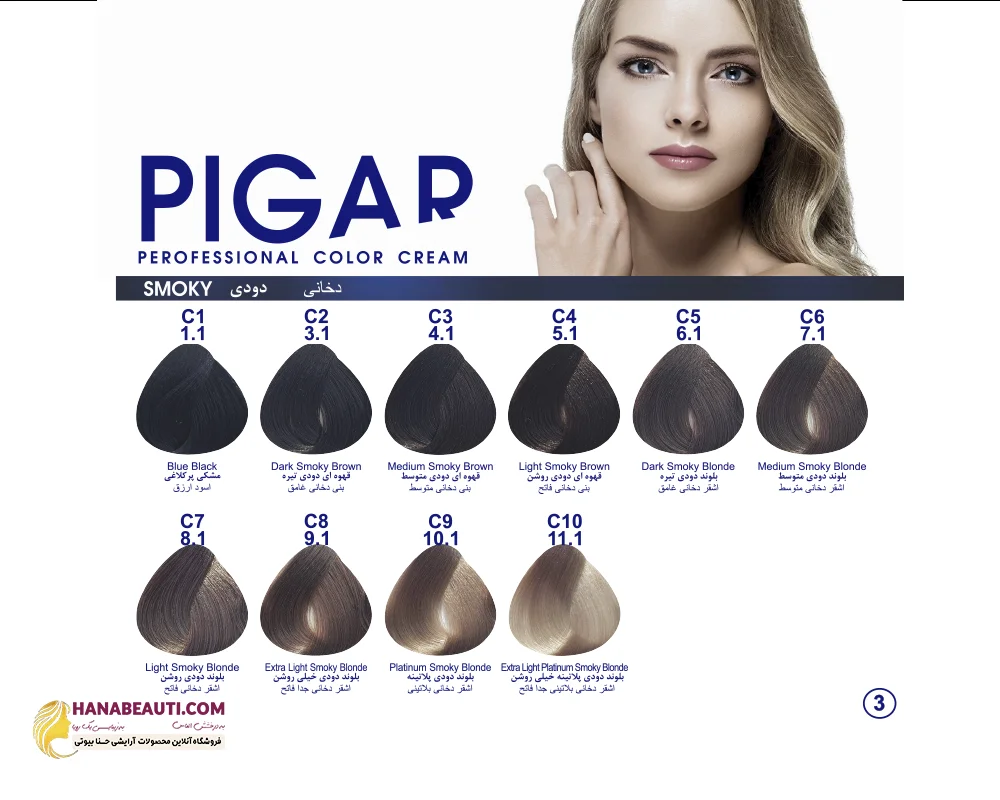 رنگ مو پیگار طیف دودی C8 رنگ 9.1 بلوند دودی خیلی روشن
