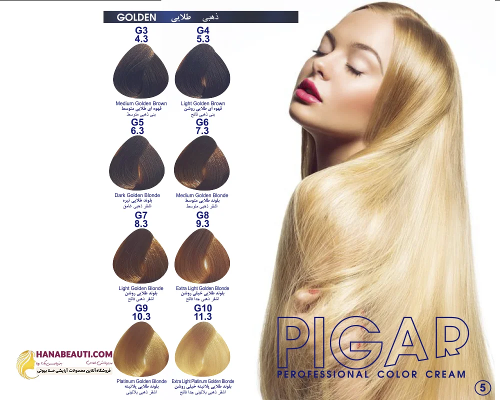 رنگ مو پیگار طیف طلایی G4 رنگ 5.3 قهوه ایی طلایی روشن