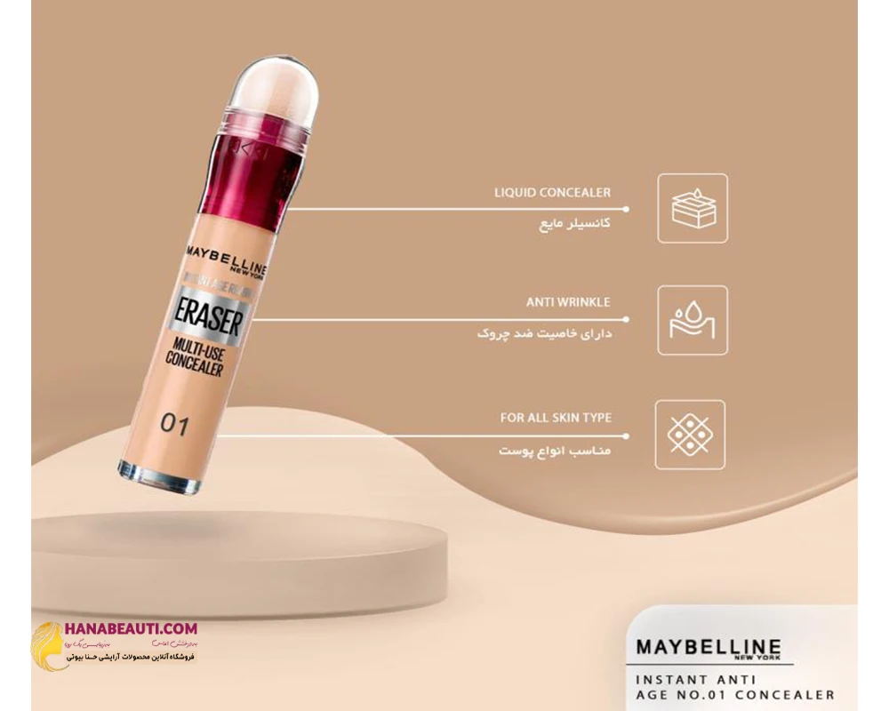کانسیلر میبلین Eraser مدل Anti Age شماره 01